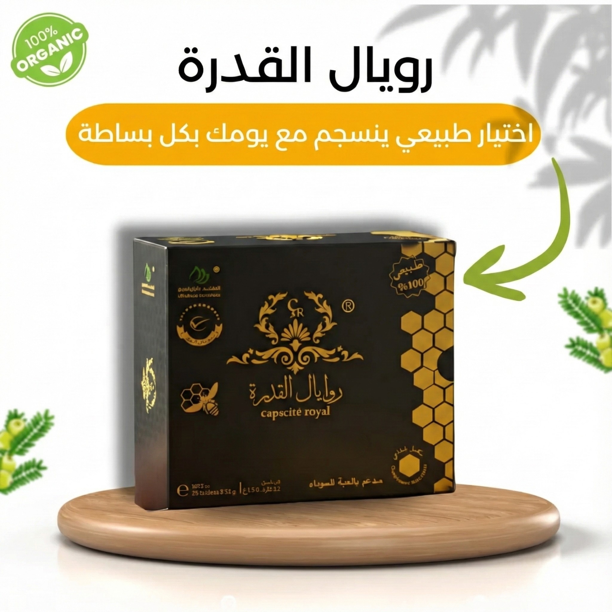 رويال القدرة هو مزيج طبيعي 100% يجمع بين العسل الحر الأصلي وزيوت نباتية مختارة مثل زيت الحبة السوداء وبذور الكتان والزنجبيل، بتركيبة نقية دون إضافات صناعية وبمذاق غني يعكس جودة المكونات. يُحضَّر في الجزائر تحت إشراف خبراء وبمعايير عالمية لضمان منتج موثوق وعالي الجودة يمكن إدماجه بسهولة في الروتين اليومي لكل من يبحث عن خيار طبيعي وبسيط. يقدم رويال القدرة تجربة طبيعية أصيلة تحافظ على نقاء المكونات وطبيعتها، مع إمكانية التوصيل إلى جميع الولايات.